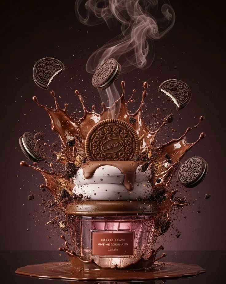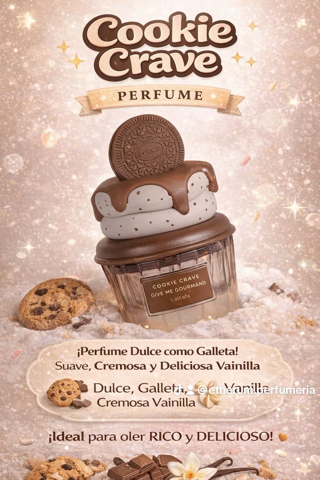 Imagina entrar a una pastelería justo cuando sacan una bandeja de galletas de mantequilla y chocolate. Cookie Crave abre con una nota rica y cremosa de cacao y mantequilla que te envuelve. En el corazón, se transforma en un vaso de leche tibia con azúcar, recreando esa sensación de sumergir una galleta. Al final, deja una estela de vainilla y crema batida, dulce, láctica y profundamente acogedora